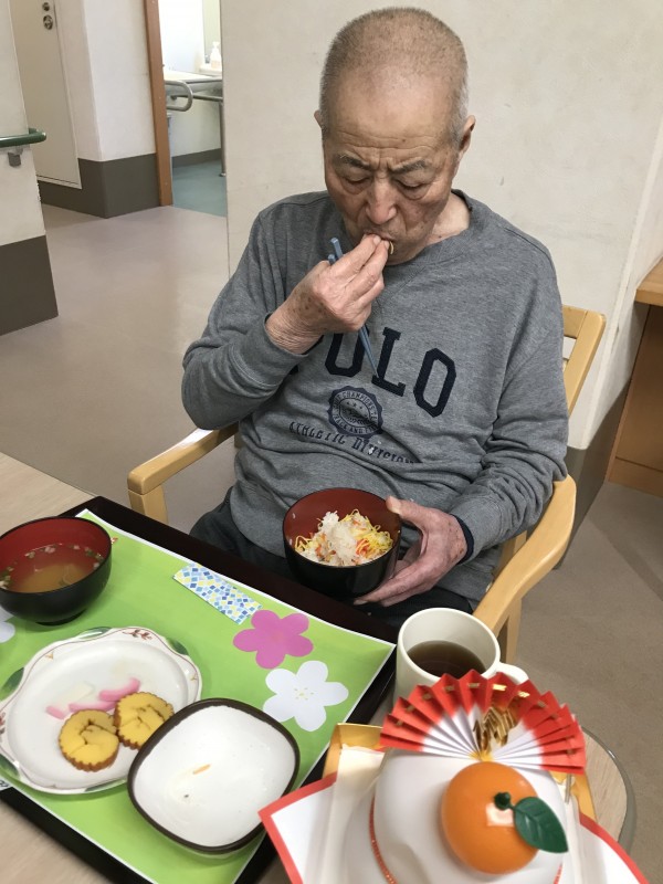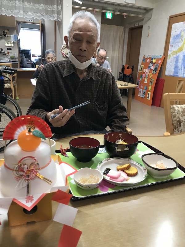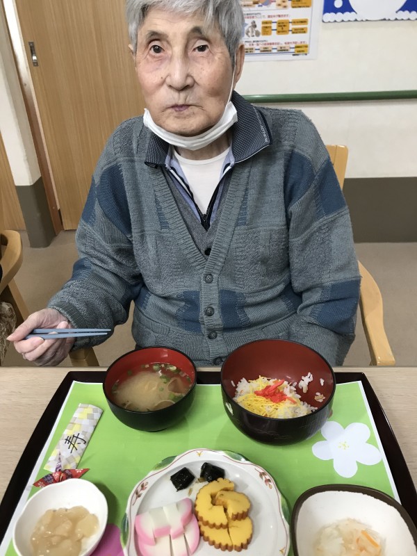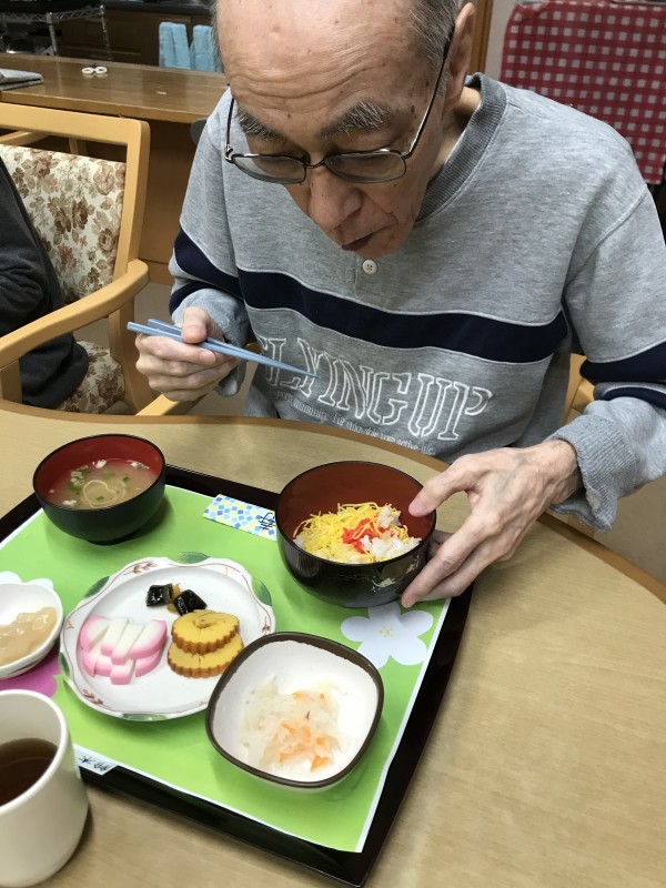 ちらし寿司に伊達巻、紅白なます、蒲鉾、黒豆、昆布巻き、煮物、豆きんとんと皆様お正月が迎えられて喜ばれておりました。