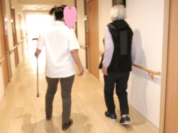 居室でマッサージを受けたのちの歩行の練習中でした。