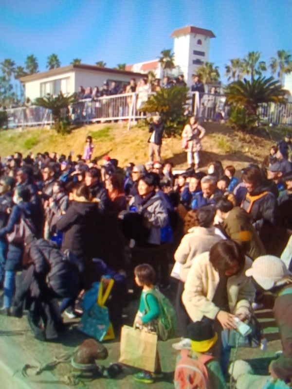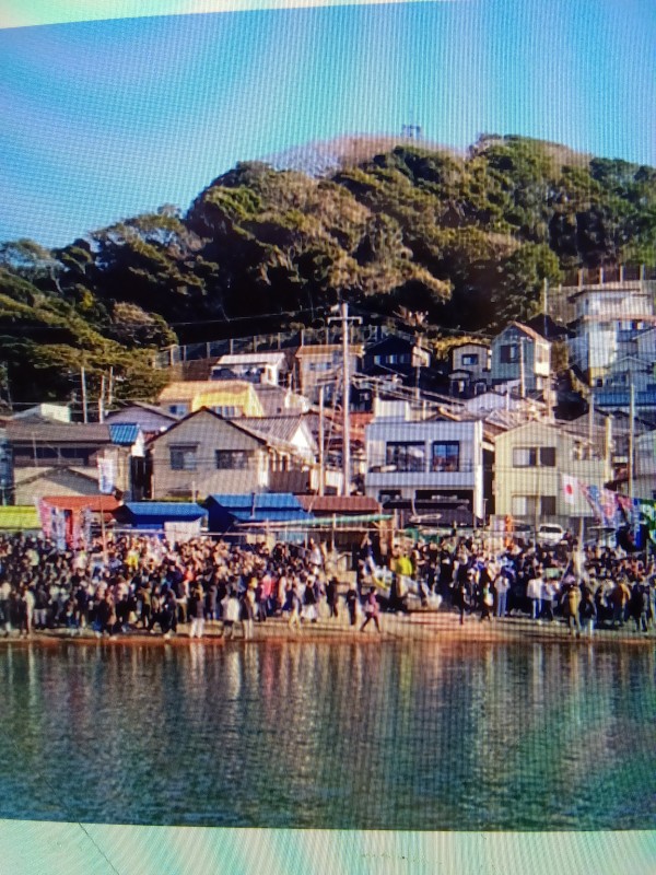 元旦に行われる小坪漁港で行われる「みかんなげ」