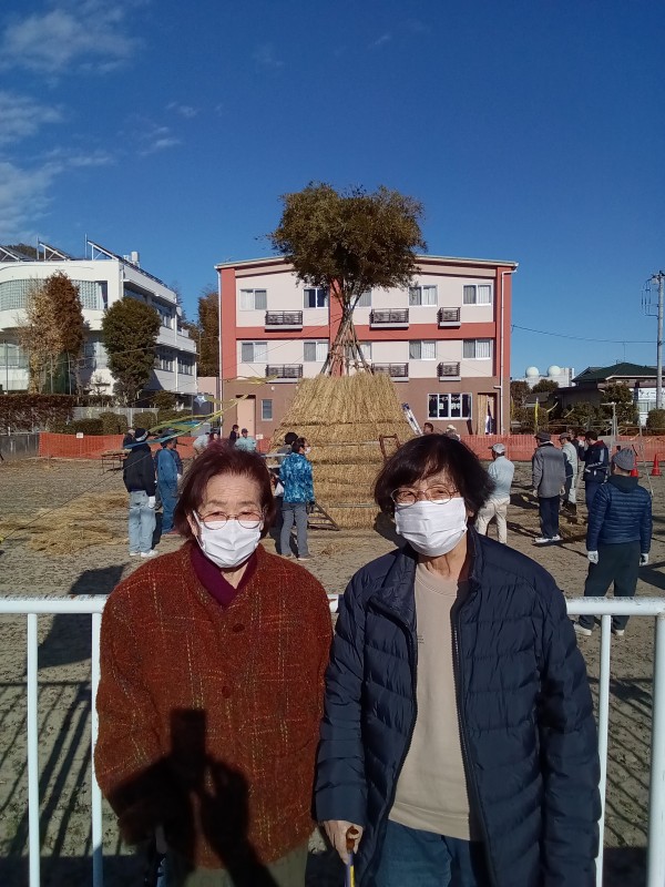 後ろで、どんと焼きの準備をしていました。記念に1枚!
