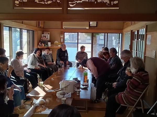 体操と歌の後は、ボランティアさんを中心に皆さんでお茶タイム。