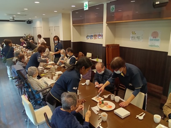 風の音さんにマイクロバスやキャラバンで送迎していただきました。以前は車いす用の介助車両もあったのですが、それが出来なくなってしまったので、別途で介護タクシーを手配し1Fと2F合同にて行ってきました