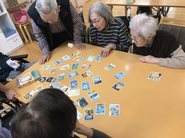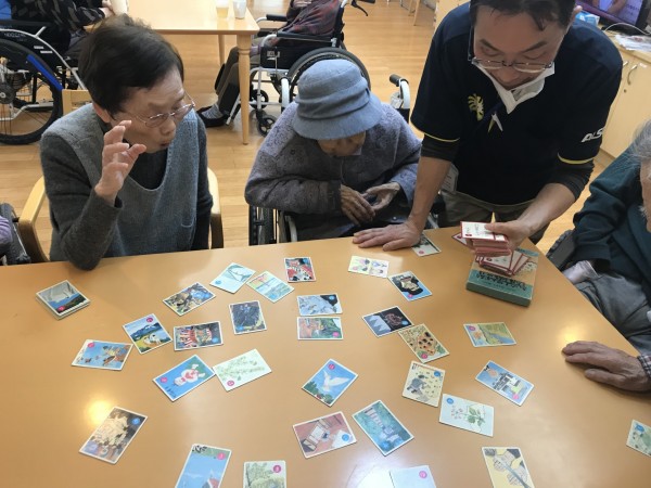 その後、1階は今月のお誕生日の方がいないので かるたをして楽しみました(*^▽^*)