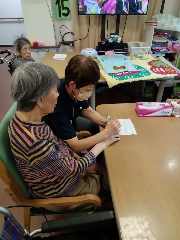 レクリエーションをしたり、スタッフとコミュニケーションをとったり家事のお手伝いをしてくださったりさまざまではありますが