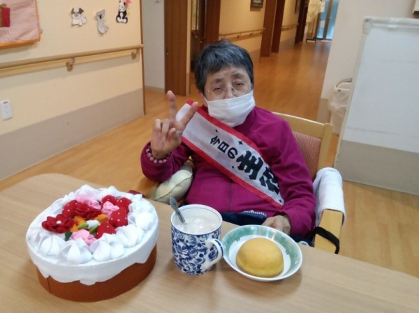 今年初めてのお誕生日会。本当は1/2が82歳のお誕生日でしたが、外泊をされていたため、1/15に皆様でお祝いしました。ご持参の酒かすでご本人様のリクエストで甘酒を作り飲んでいただきました。おめでとうございます!!