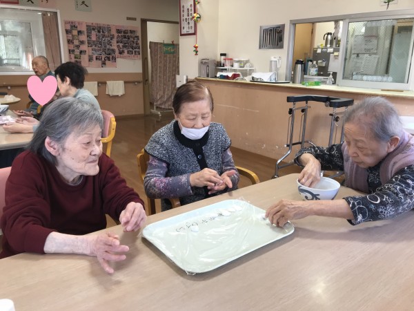 1月はお二人様がお誕生日でした~おめでとうございます!また鏡開きではおしるこを作って食べました~餅はちょっと怖いので白玉粉で白玉しるこを作っていただきました~。