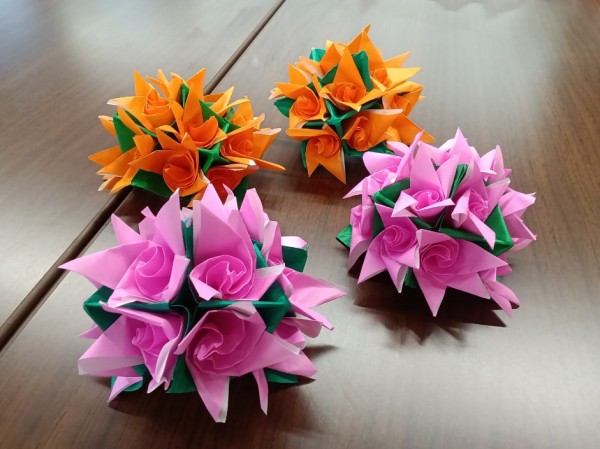皆さん丁寧に折り紙の角と角を合わせ綺麗に土台を作り、花は右手と左手の協調作業。両手の力の入れ加減が綺麗な花作りのカギでしたね。