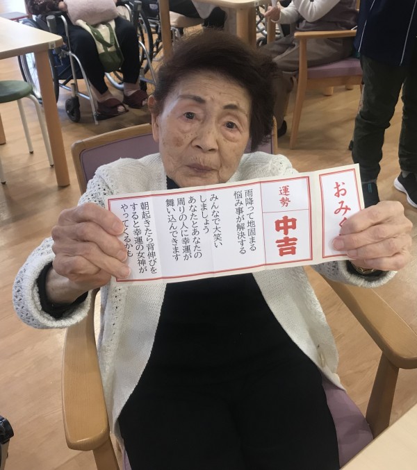 ご利用者様の皆さんはお正月に「おみくじ」を引きました。