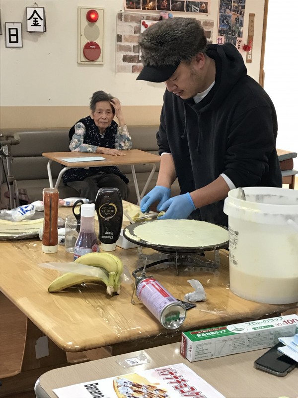 1月17日には「みなとかふぇbloom」さんが出張でクレープを作りに来てくれました!普段食べ慣れていない若者?向けの食べ物でしたが、皆さん大満足されたご様子でした