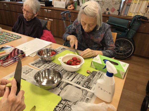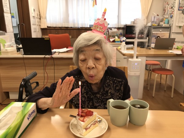 3名の皆さんがおお誕生日だったようです。ケーキのろうそく フ―っと吹き消して美味しく頂きました♬