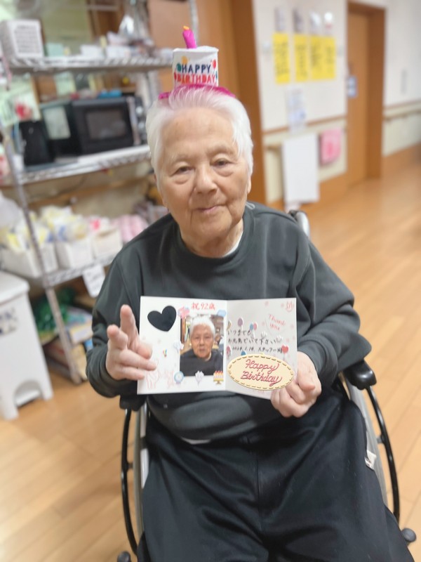 美味しいケーキとスタッフ手作りの色紙のプレゼントをお渡しし