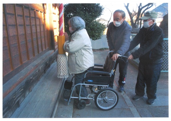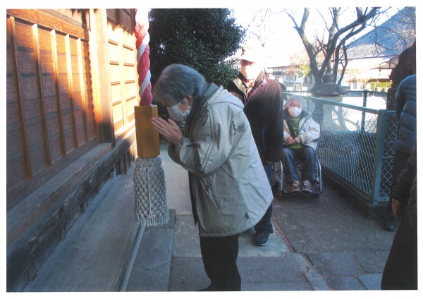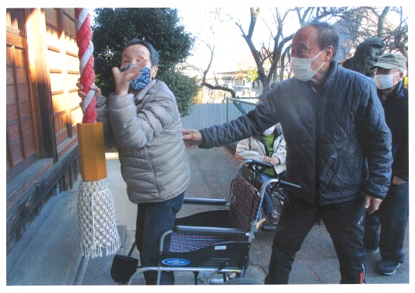 本日は初詣5日目、今年最後の参拝となりました。参加されたのはご利用者様8名とスタッフ2名。皆様、それぞれに新年の願いを胸に、川越菅原神社へお参りに行ってきました。