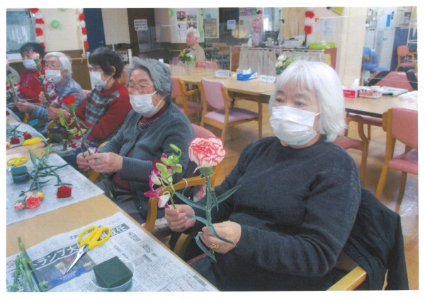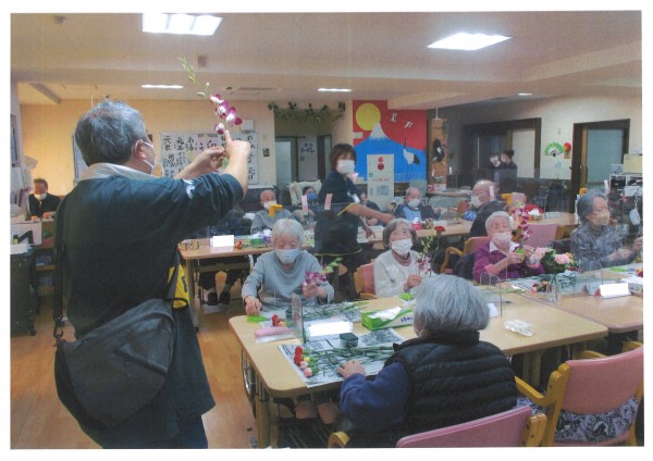 本日午後のレクリエーションは【フラワーアレンジメント教室】