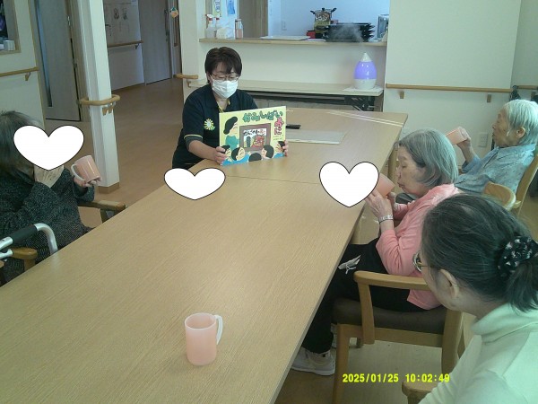 入居者皆様で楽しく紙芝居を職員が読まれている方に集中してみておられました(^_-)-☆