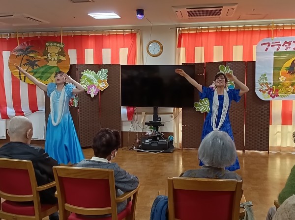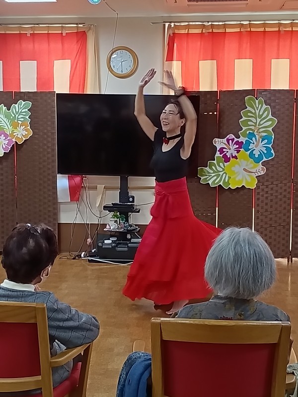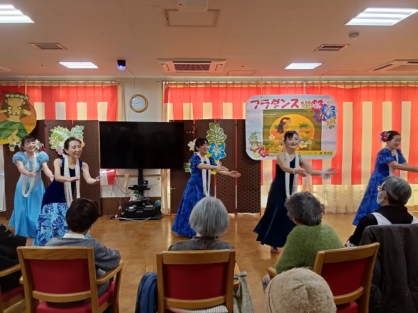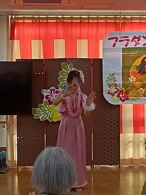 「瀬戸の花嫁」や「亜麻色の髪の乙女」等、馴染みの深い曲からハワイの曲まで、さまざまな音楽に合わせてダンスを披露して下さいました。