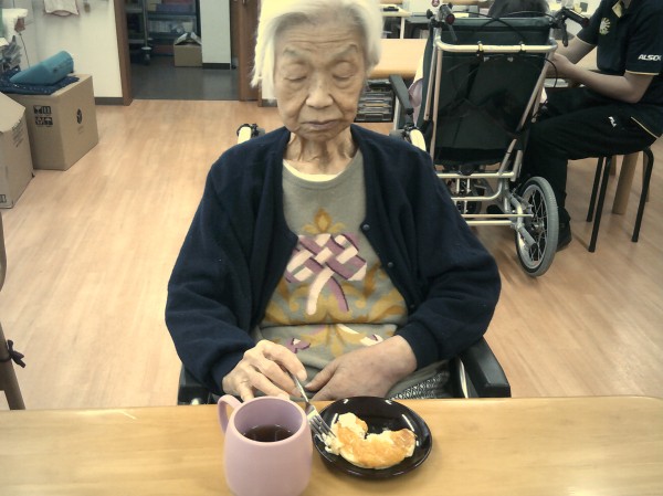 今回は、おやつに職員の手作りホットケーキを召し上がっていただいた時の様子です(^^♪
