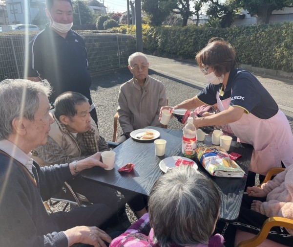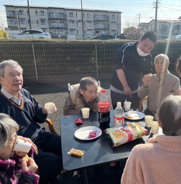 本日は、青空でいい天気だったので外でおやつを食べました(*'ω'*)