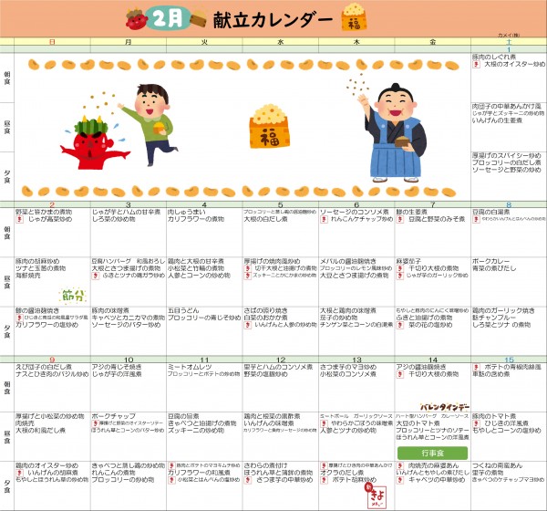 本日は2月の献立表をご紹介したいと思います(*'▽')