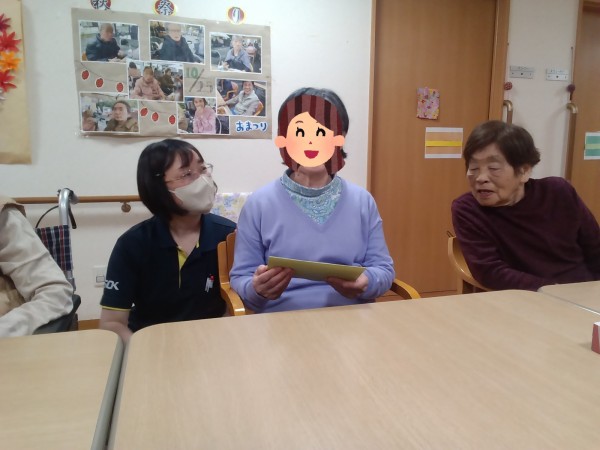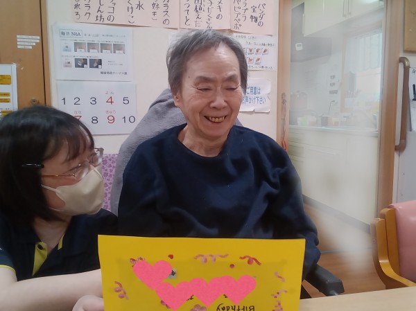 ハッピーバースデーの合唱と、バースデーカードのプレゼントをお贈りしました。