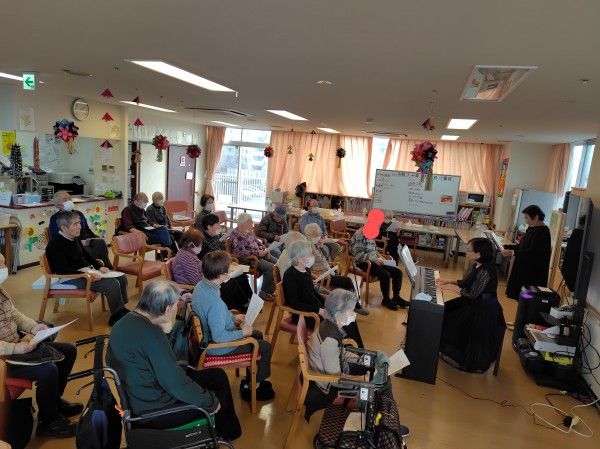 バラが咲いたでは歌詞カードを見ながら皆で合唱!皆様喜んでくださいました!