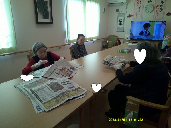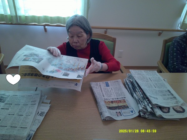 手先の運動を兼ねての新聞たたみ等のレクリエーションも行っているのでGH丸ヶ崎にいらっしゃってくださいませ!!