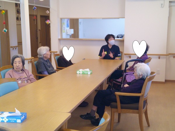 2階の入居者様皆様で歌レクを行い声出しを行いました(^_-)-☆