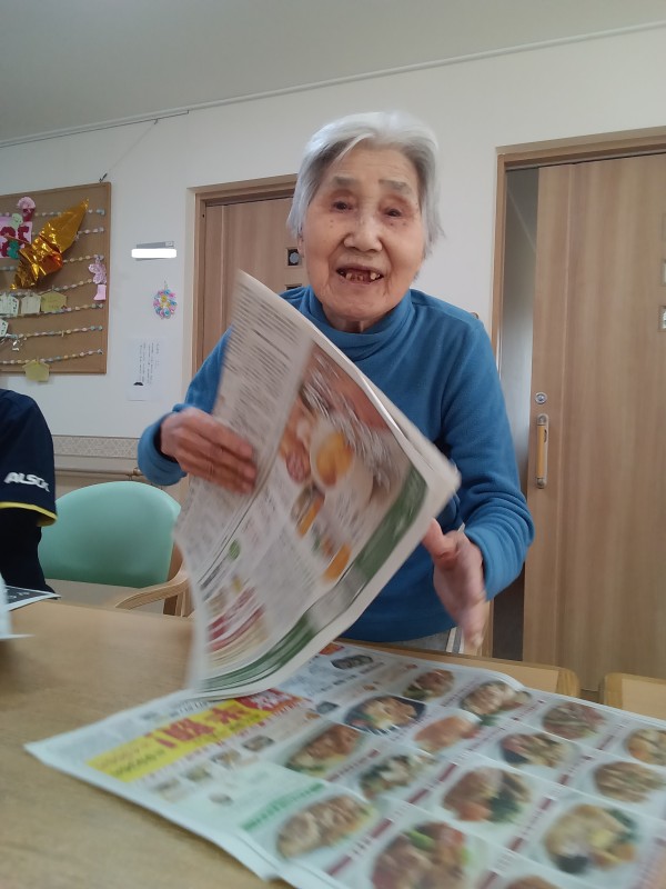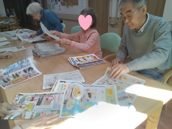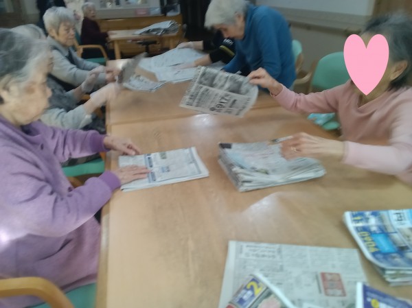 新聞たたみのお手伝いの様子です。