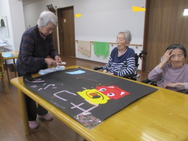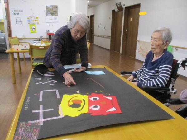 こんにちは! グループホームみんなの家・あきがせの介護ブログです! よろしくお願いいたします。 今日は節分レクに向けて貼り絵を行いました。そのご様子をお知らせいたします。