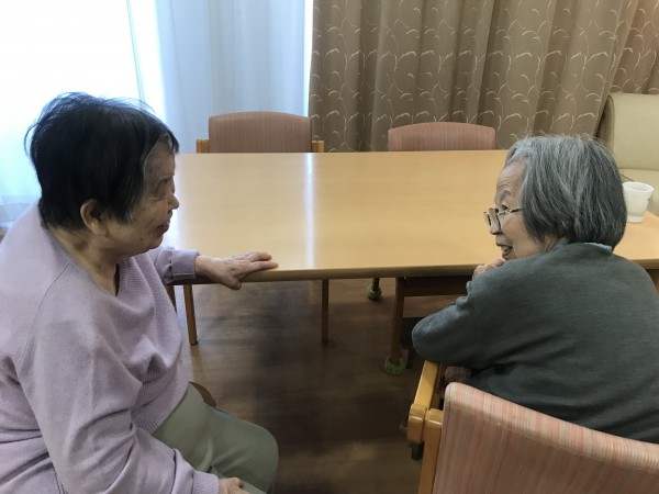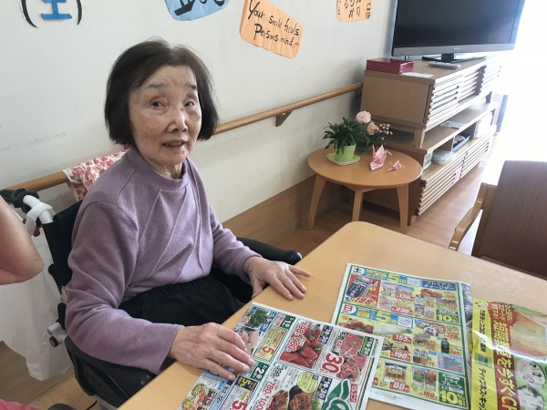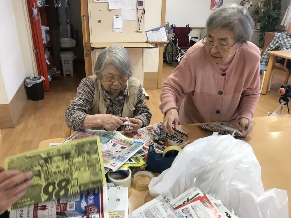 ホームの午前中の風景です♪チラシをつかって、工作をしたりお話を楽しまれたりして過ごされています♪