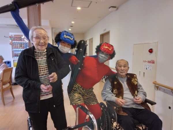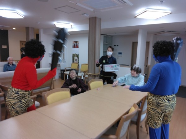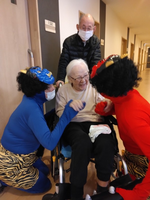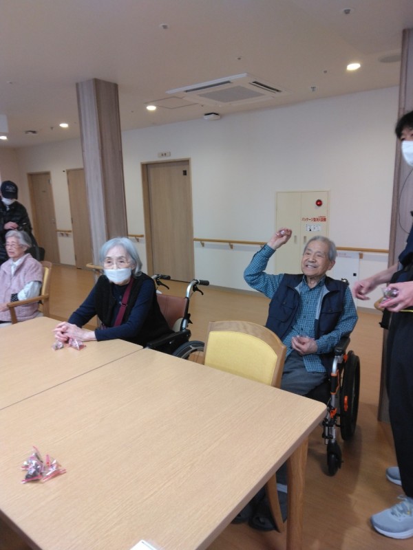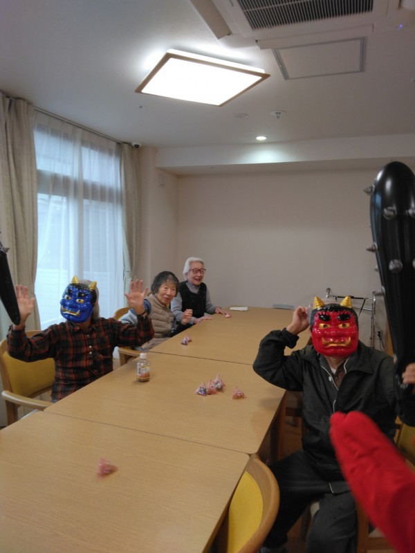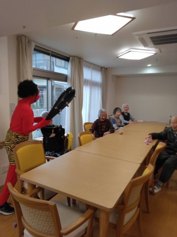 普段は2階フロアで行事レクを行っていましたが、外から鬼が入りたかったため1階にしました。