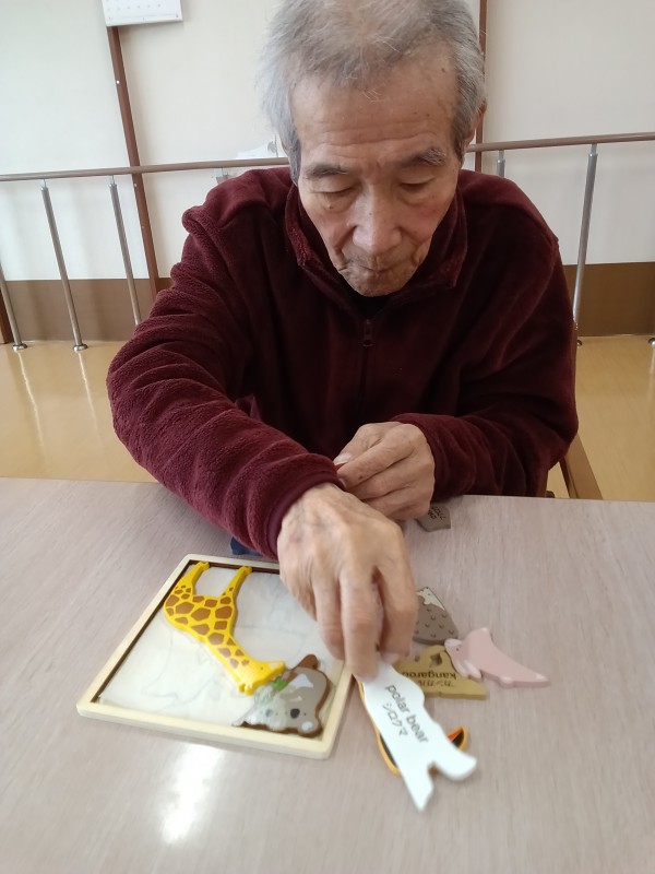 T様はパズルを真剣に取り組まれています。