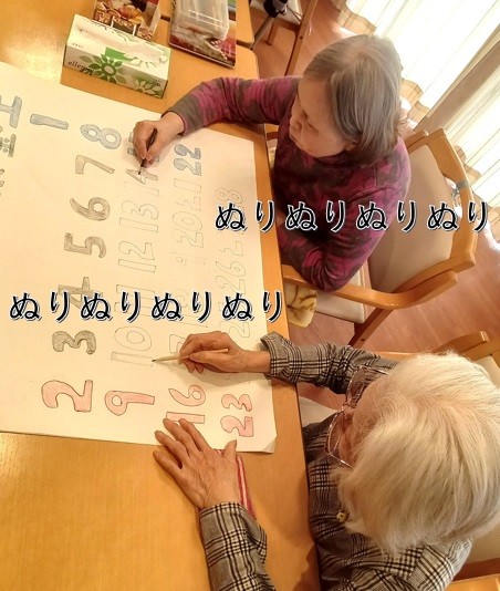 今回は 当ホームの ぬりえ職人による 2月のカレンダー制作風景をご紹介いたします