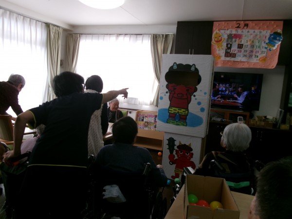 午後には、スタッフお手製鬼!で豆まきをしました。