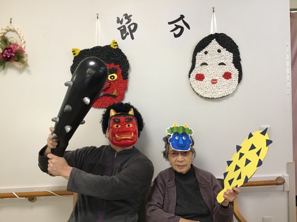 利用者様も鬼のお面をかぶってにっこり☆