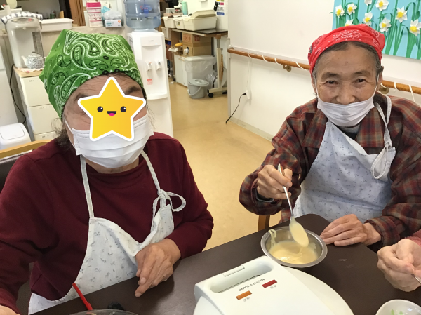 豆まきの後は、食後に利用者様に作っていただいたたい焼きをみんなで食べました(*^^*)