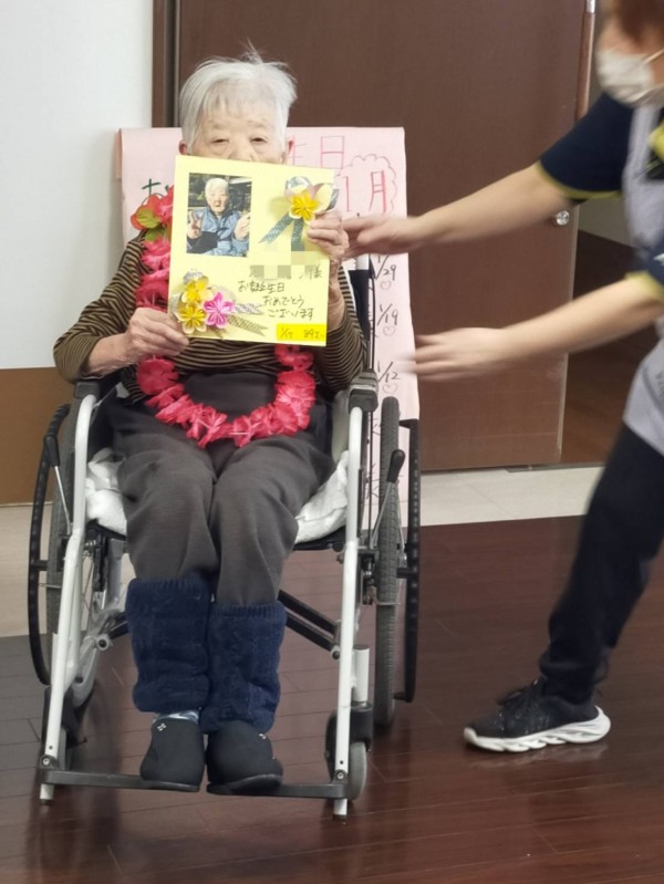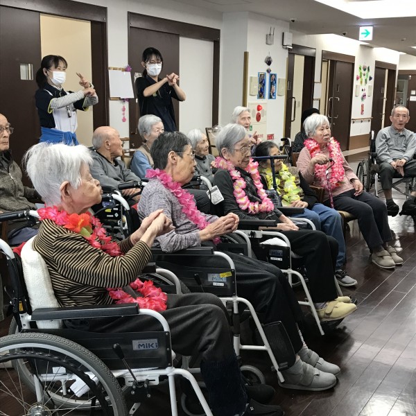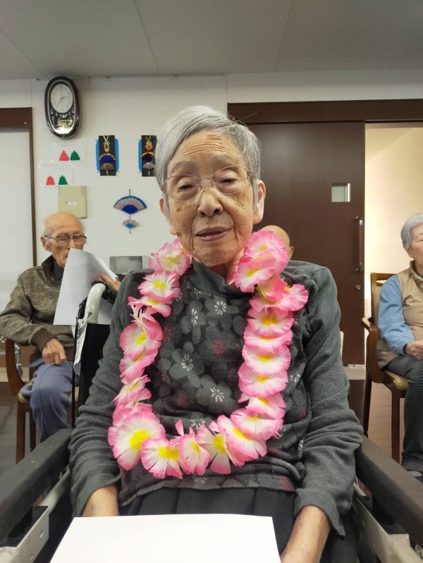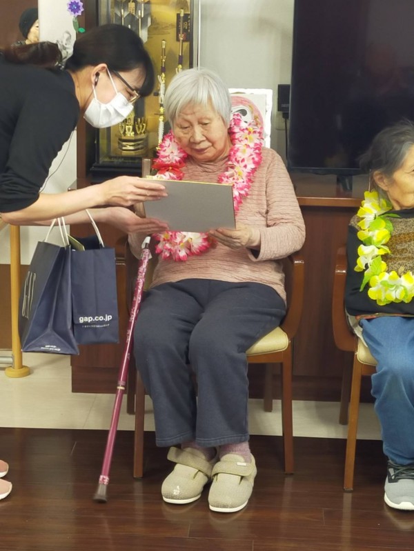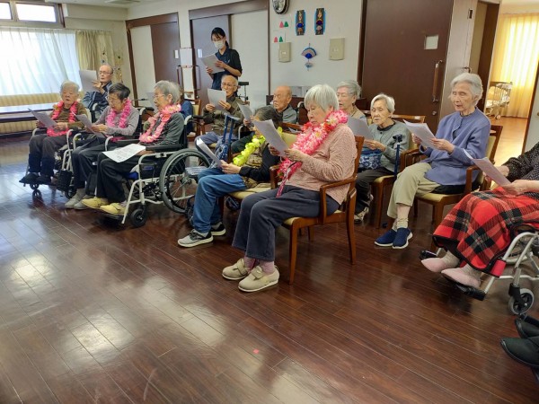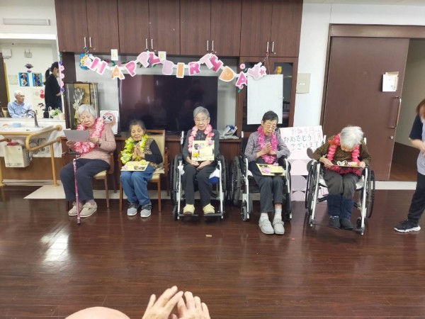 今月はお誕生日の方が5名いらっしゃいました。皆様女性です。色鮮やかなレイを掛けて皆様でハッピーバースデーの歌でお祝いしました。