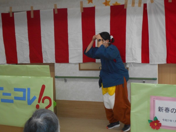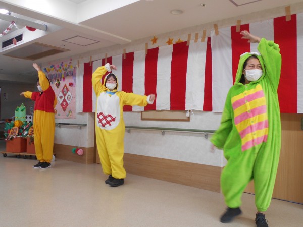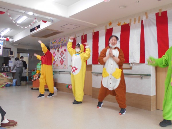 職員による出し物、ヤングマンの歌や踊りを披露し、皆さまリズムよく手拍子をされご覧になられています(^^)/