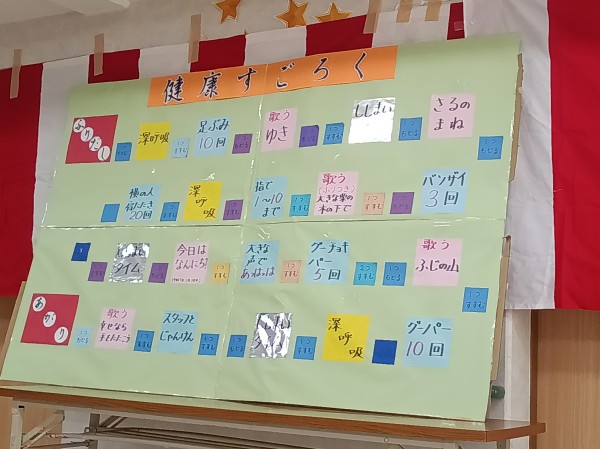 皆さまにサイコロを振って頂き、すごろくに合わせた体操や歌を歌ったり、獅子舞タイムのマスに当たると獅子舞が登場し、動き回っていました☆彡