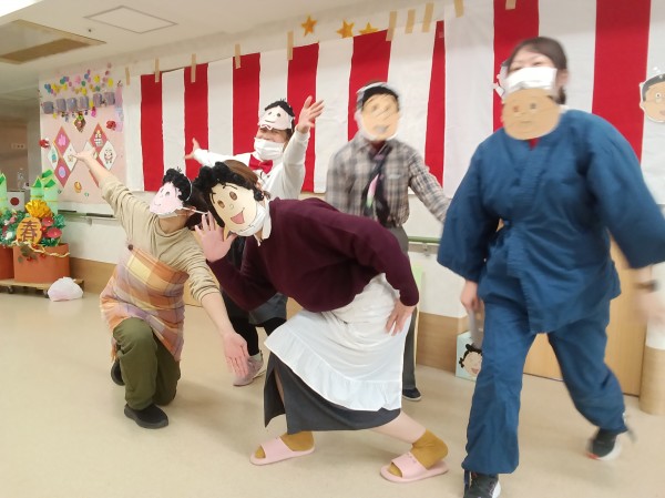 サザエさん一家による福笑いや踊り、最後にはじゃんけんを行いました(^^♪