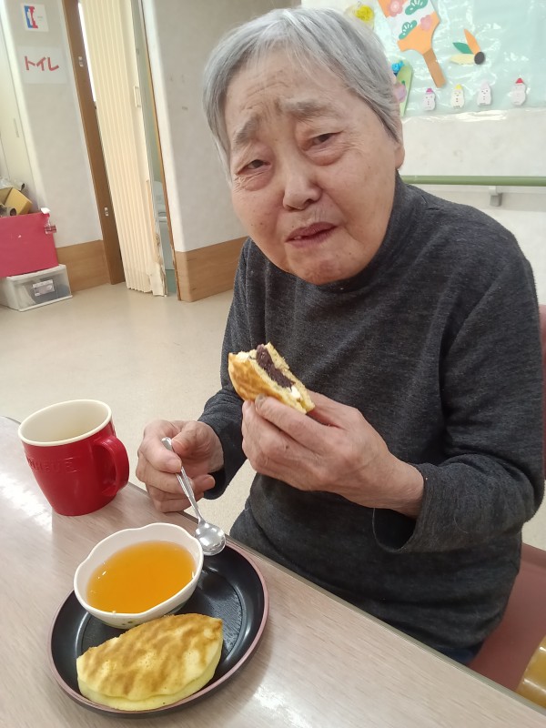 「甘くておいしいー」「大きいどら焼きだね」「私どら焼き好きー」と皆さまとても美味しそうに召し上がっておりました(^^)/