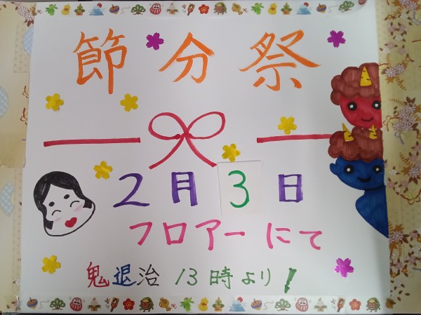 今年の節分は2月2日日曜日でしたが、みんなの家松伏では2月度日に節分祭イベントを開催しました(*^▽^*)