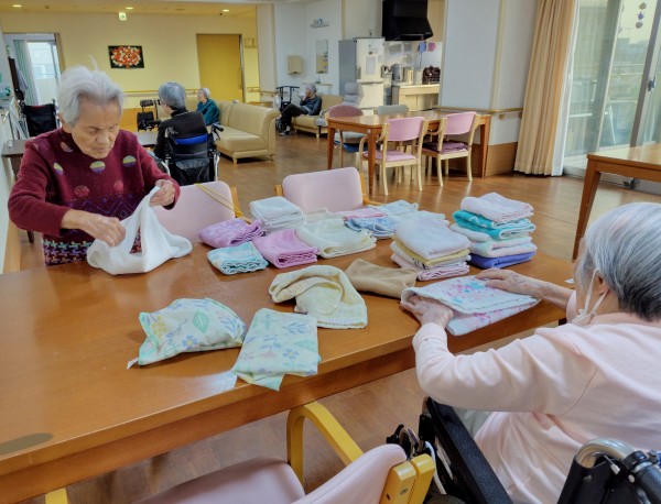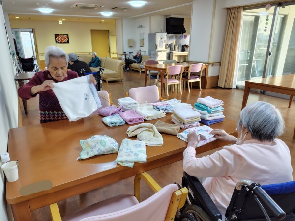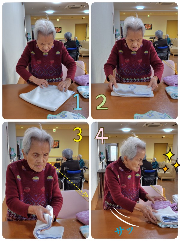 歩くのは早いし、仕事も早い!タオル畳みをバシバシと行なってくださいます。