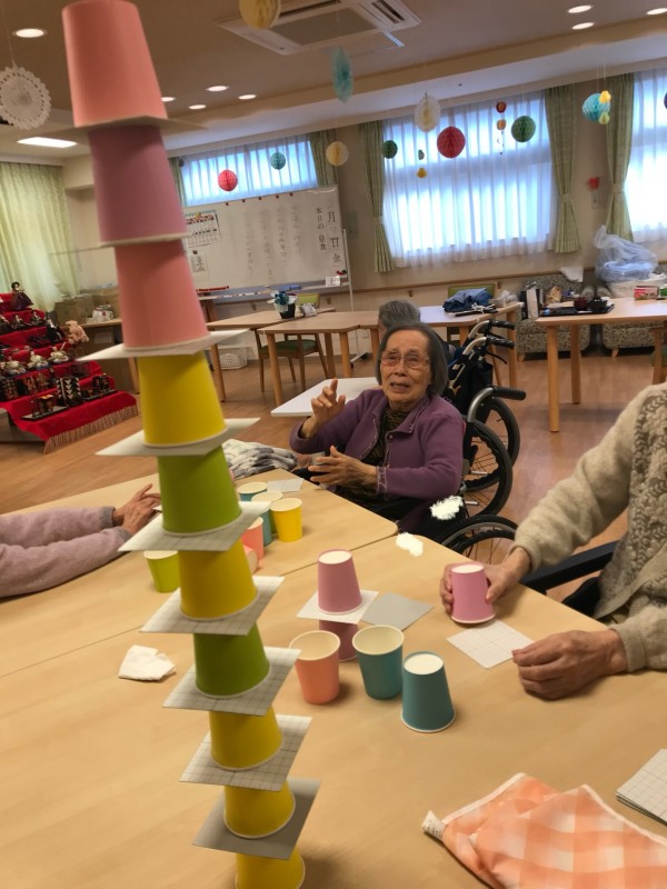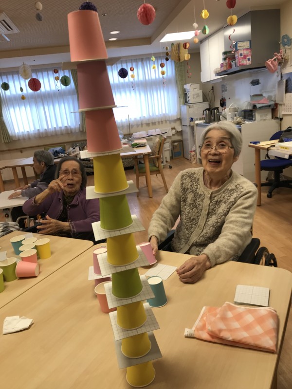 本日の午後のレクリエーションは「紙コップタワー」作りに挑戦しました(*^▽^*)