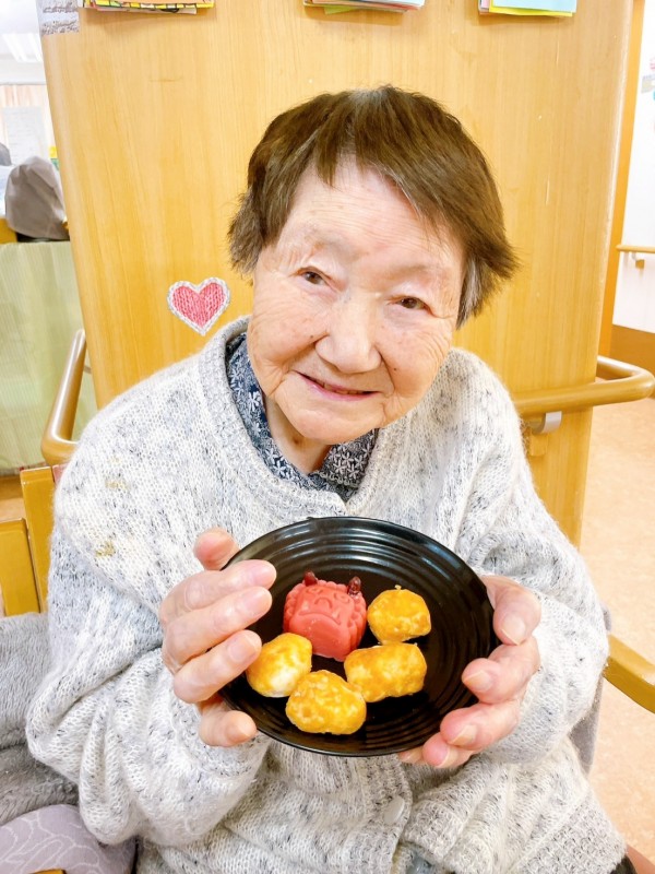 グループホームみんなの家大宮三橋 節分の日のおやつタイム~かわいい和菓子で季節を楽しみました。