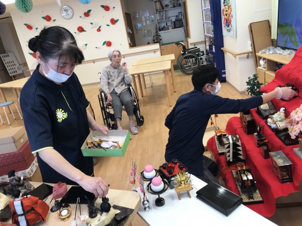ひな祭りまで1ヶ月を切ったので1階の食堂スペースにひな壇を飾りました♡