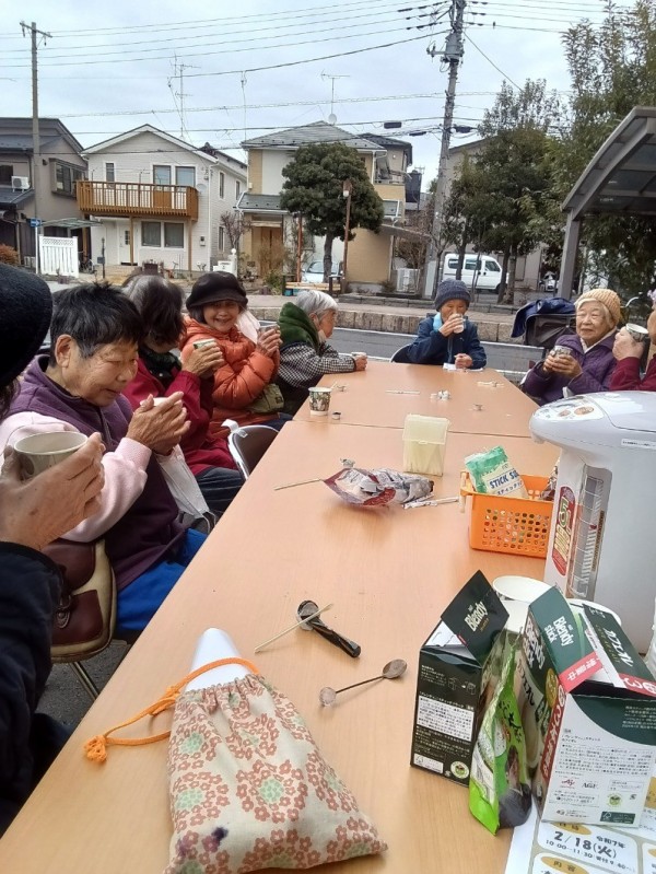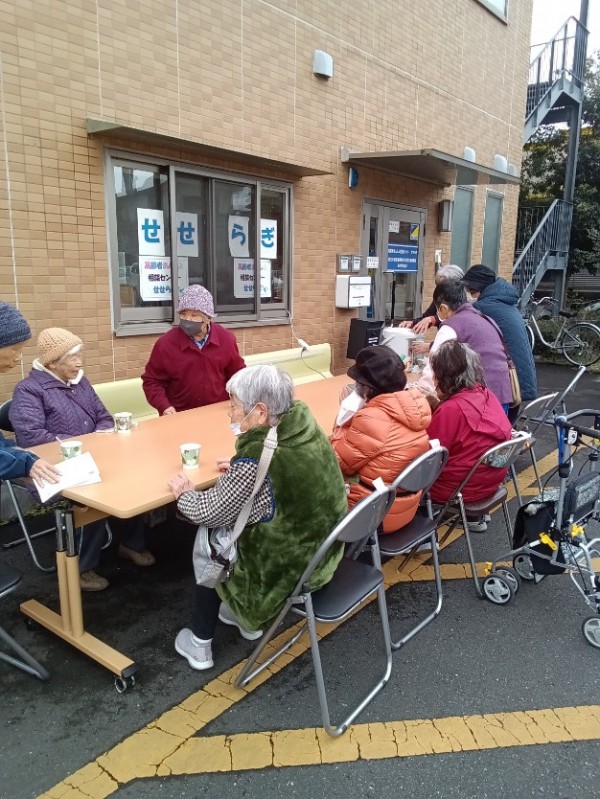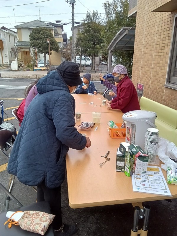 特に寒かったこの日、ボランティアの方が何飲みたいとお声がけをし、温かいコーヒー、お茶を飲み、皆さんで温まることができました。