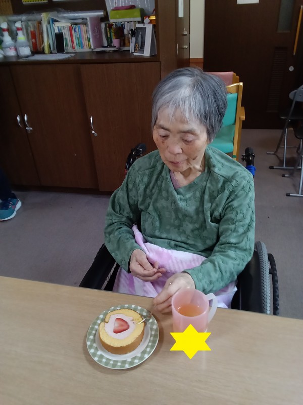 ロールケーキを提供し、皆で召し上がりました^^
