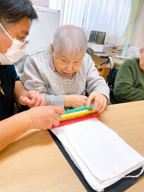 手繰り寄せでは「こりゃ足の運動になるなあ」「踵でやれば出来る!」等楽しそうな声が聞かれましたよヾ(≧▽≦)ノ