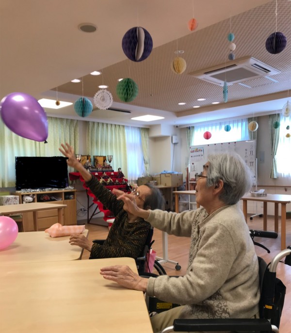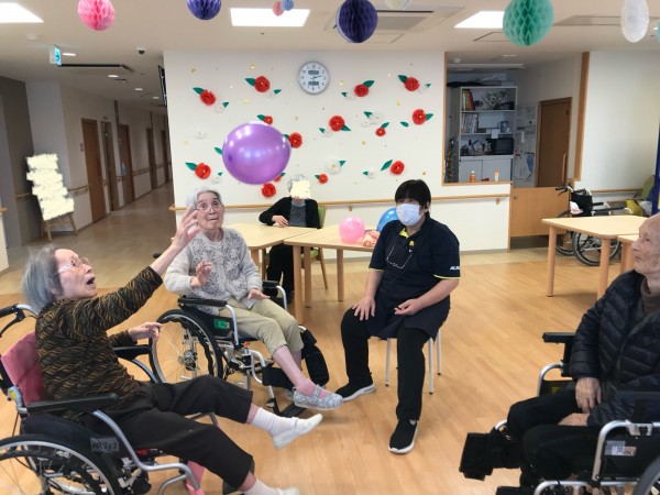 職員が打った風船を皆さん順番にポンポン打ち返していきます(๑˃̵ᴗ˂̵)