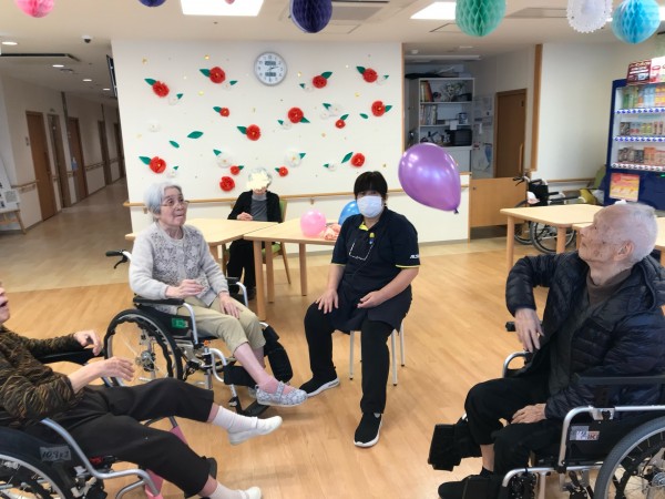 本日の午後のレクリエーションは「風船バレー」を行いました(๑>◡<๑)